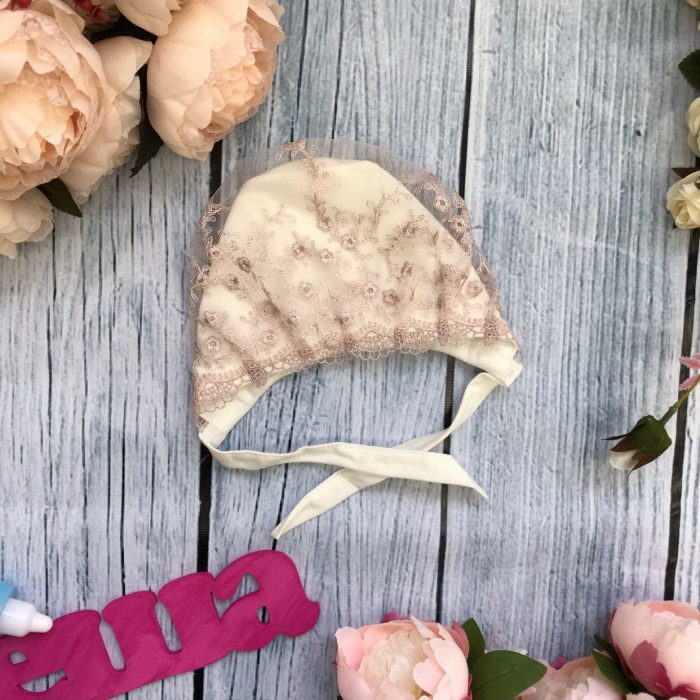 Теги: Купить детские чепчики оптом от производителя. 184. Чепчик с кружевом, хлопок 100 % интерлок цена,отзывы официальный сайт "Стеша Курск"