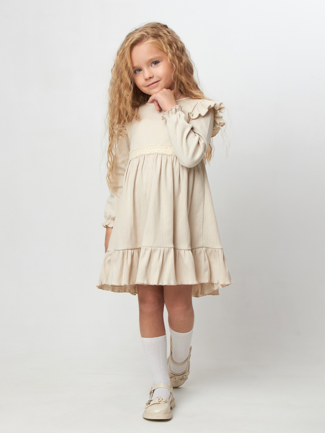 Теги: Платья детские из мулина оптом. 332. Платье детское из лапши, хлопок 100%, бежевое, р. 74,80,86,92 цена,отзывы официальный сайт "Стеша Курск"