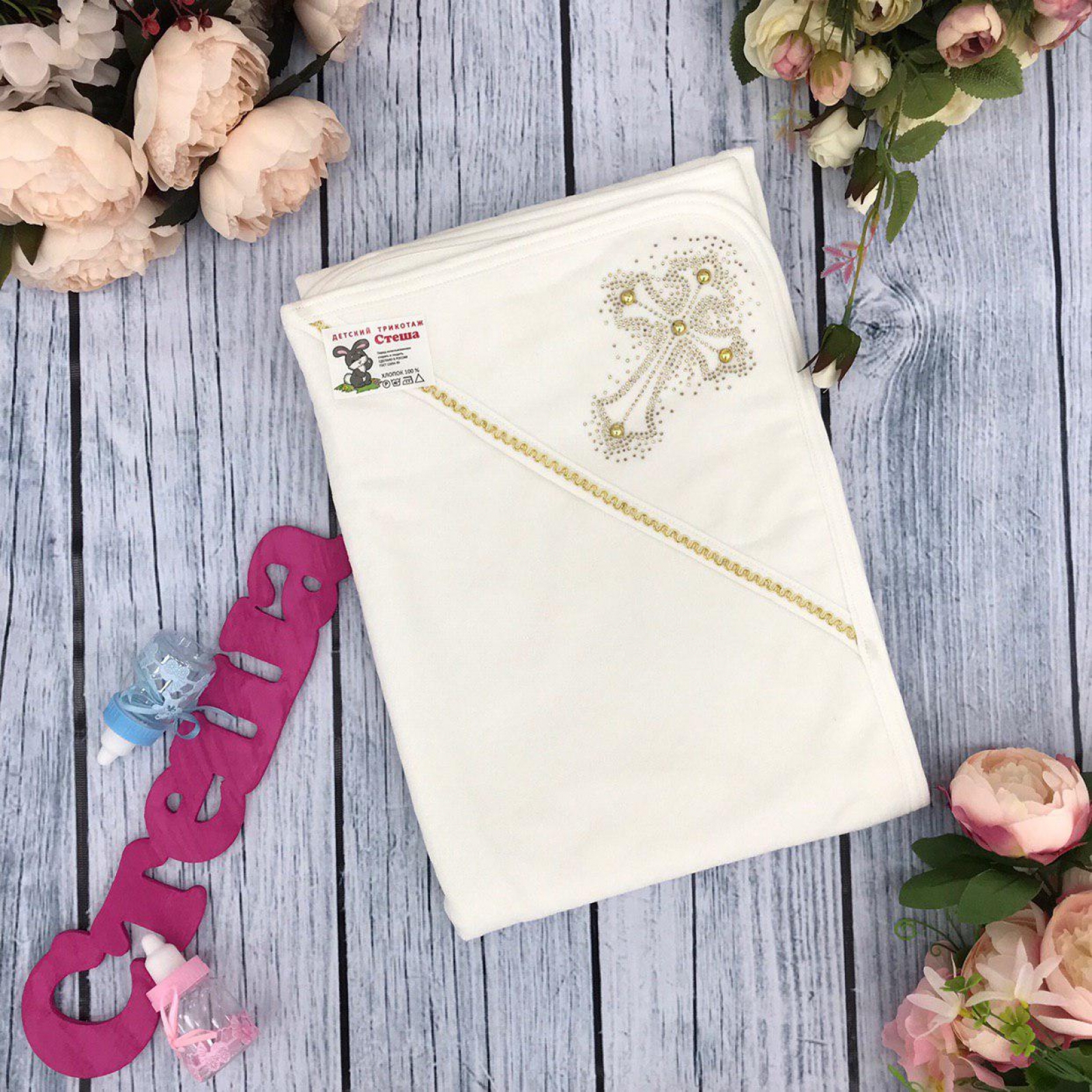 Теги: Купить оптом Крестильная пеленка. 231. Крестильная пеленка, хлопок 100% Махра, Золото цена,отзывы официальный сайт "Стеша Курск"